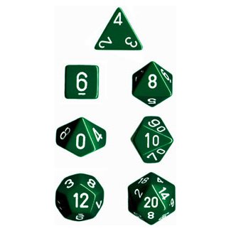 Chessex Dice: Polyhedral 7-Die Opaque Dice Set - Green with White Review